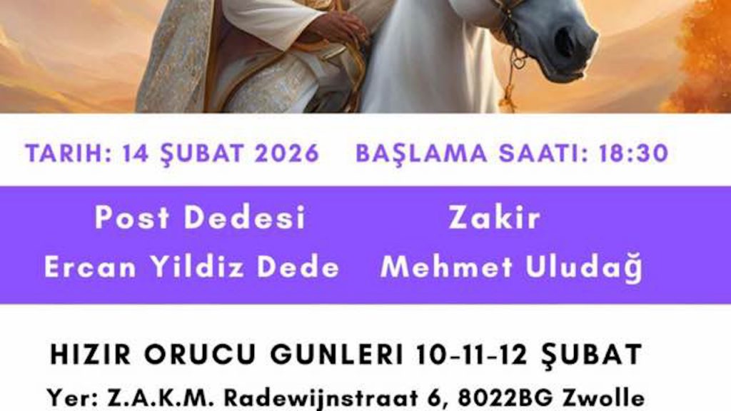 ⌈AHA⌉ Hollanda’nın Zwolle kentinde faaliyet yürüten Z.A.K.M. (Zwolle Alevi Kültür Merkezi), Hızır ayı vesilesiyle Hızır Cem’i düzenliyor. 14 Şubat 2026...